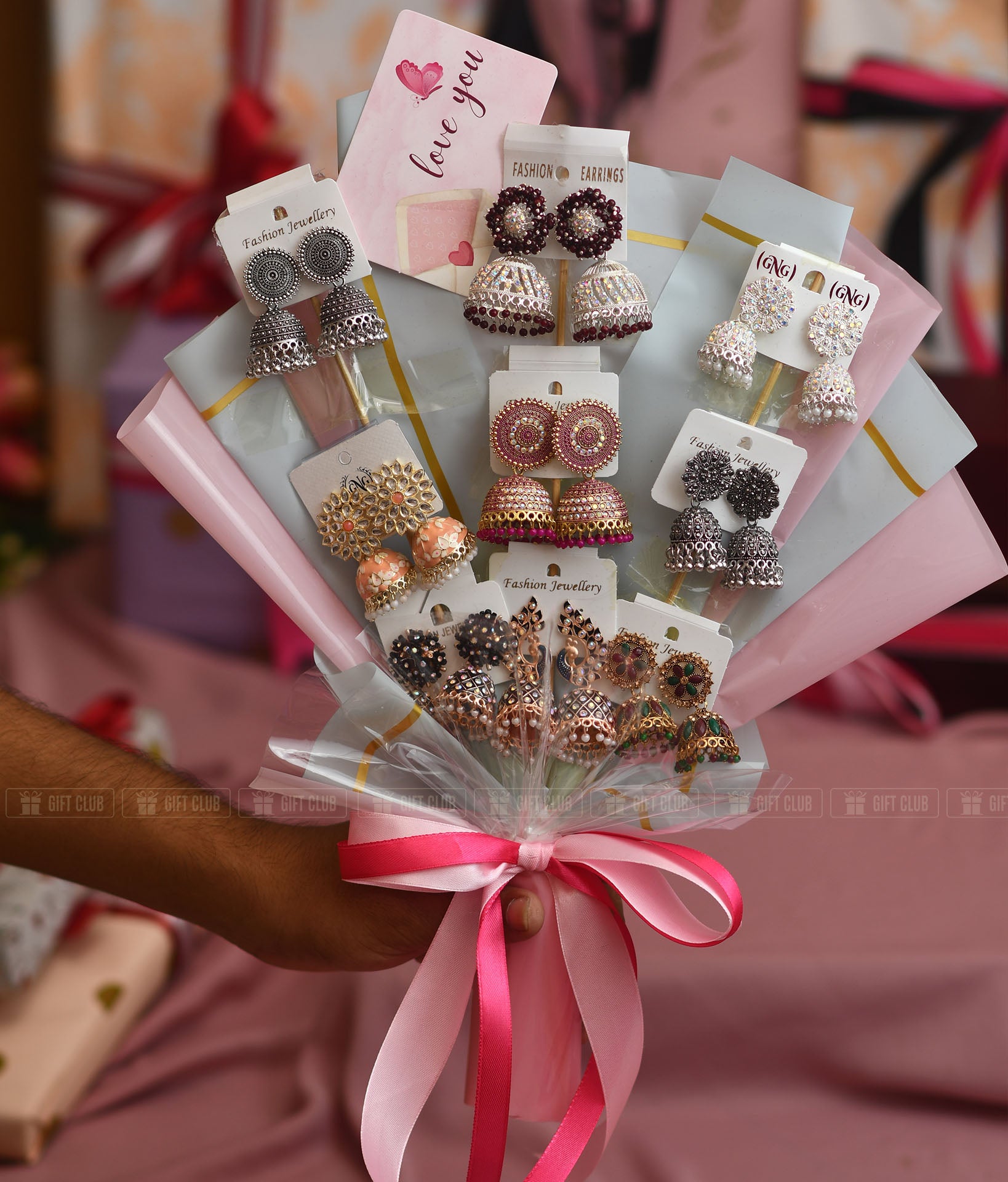 এই Jhumka Bouquet-এ রয়েছে ৯টি ভিন্ন ডিজাইনের প্রিমিয়াম জুমকা সেট – প্রতিটি বানানো হয়েছে যত্ন আর নান্দনিকতার ছোঁয়ায়। ✨